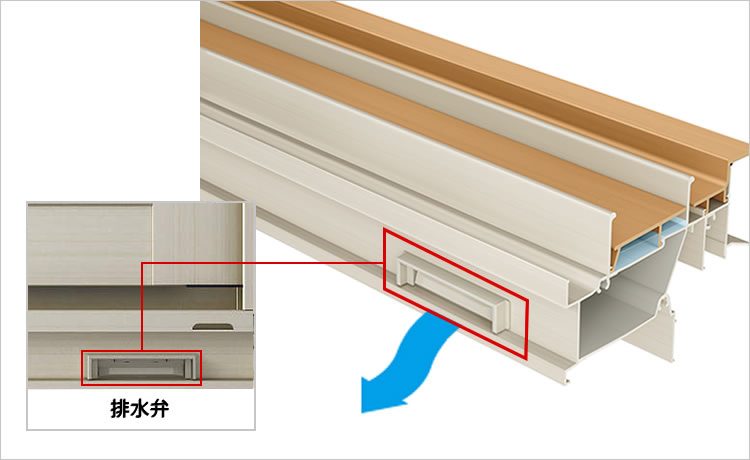 引違い窓の下枠は、雨などの水もスムーズに排水される構造になっています。
